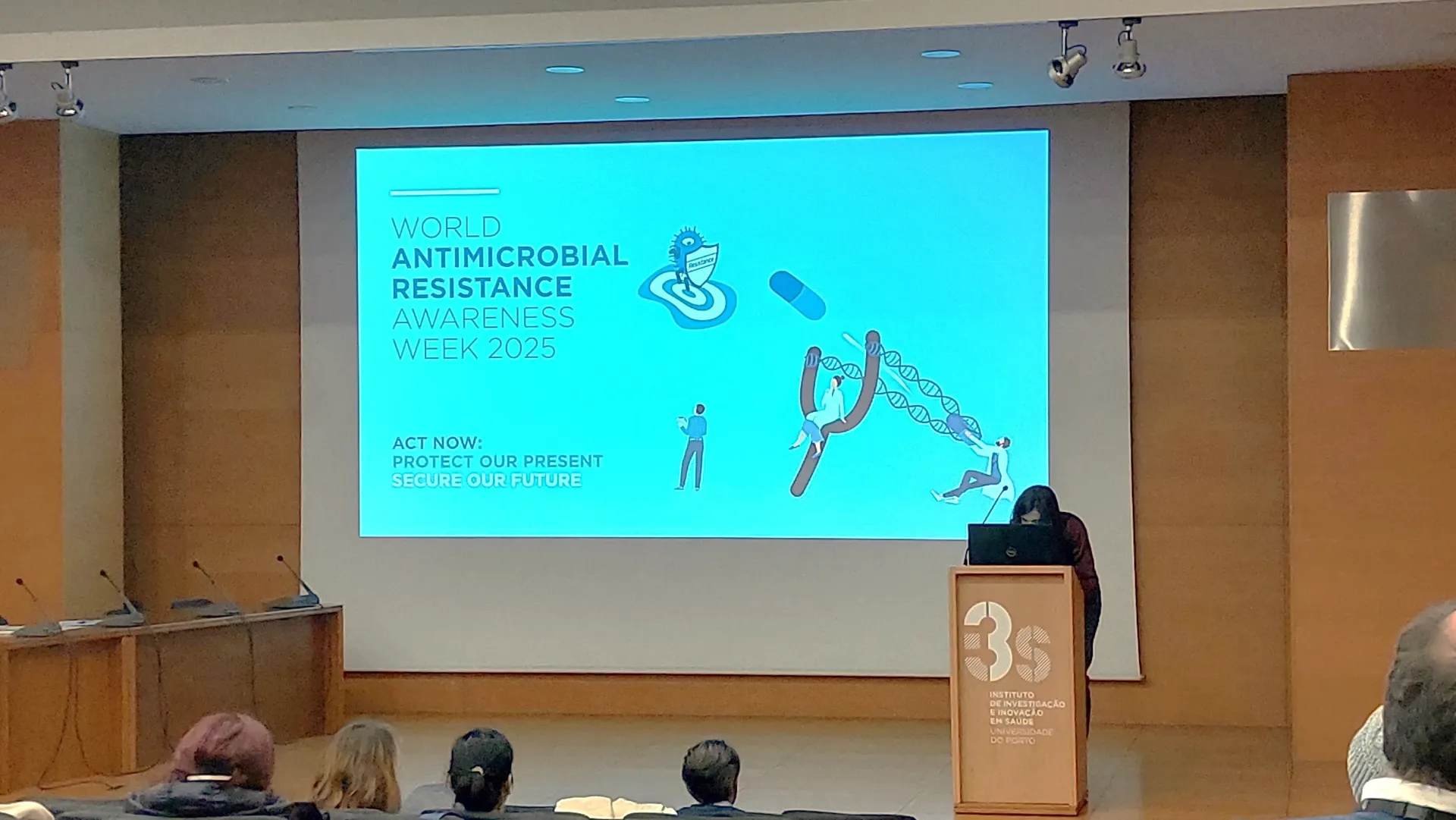 Este evento contou com a presença de vários profissionais reconhecidos nas áreas de medicina humana e animal, fazendo parte de uma iniciativa global promovida pela Organização Mundial da Saúde para aumentar a consciencialização e compreensão da problemática da AMR e encorajar ações colaborativas para mitigar a emergência e disseminação de microrganismos resistentes.